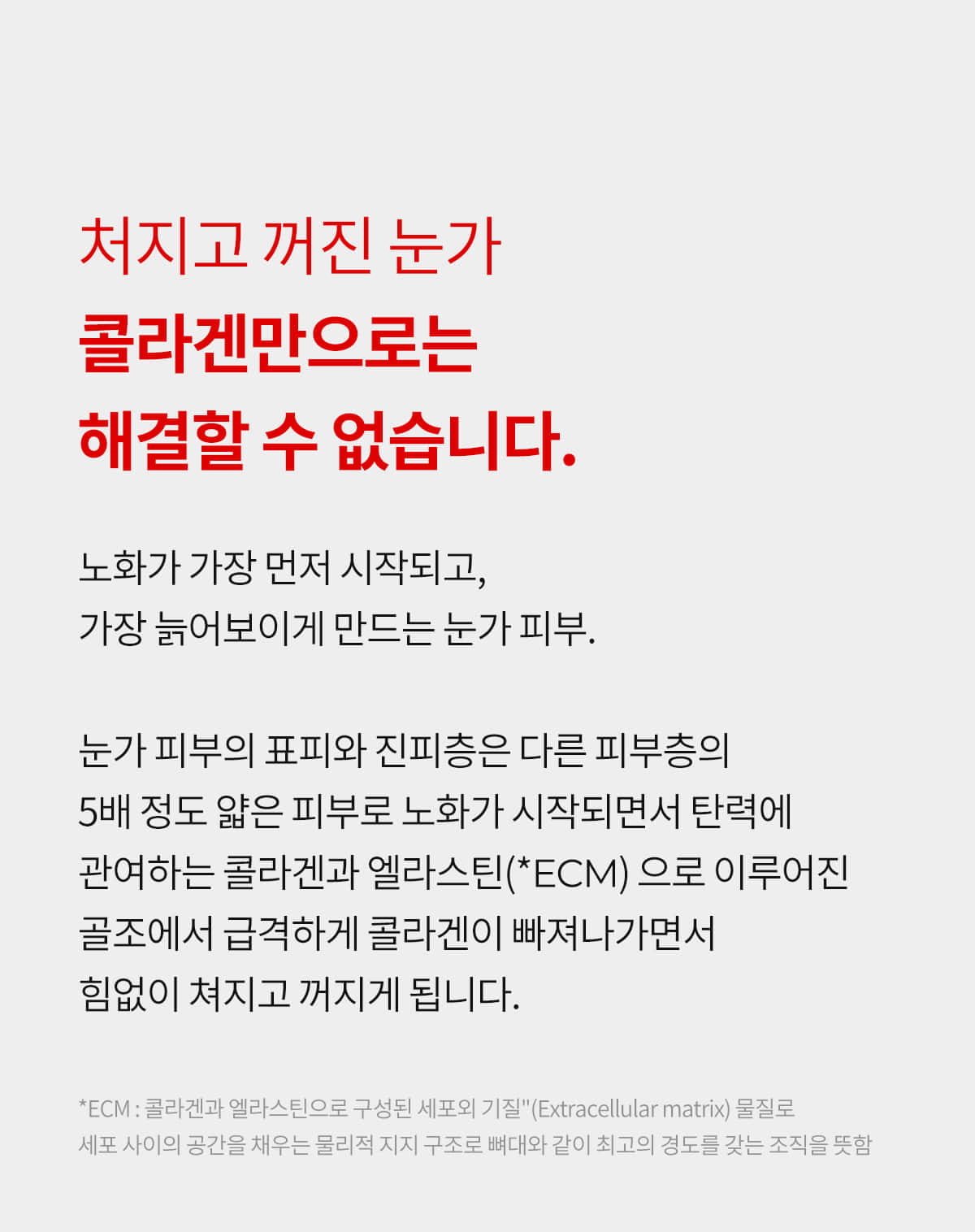 흔히 콜라겐부족현상 때문에 노화가 진행되고 눈밑이 꺼진다고 하는데, 닥터멜락신 시멘리트 골조크림은 칼슘에 포커스를 두고 꺼진 곳에 기둥을 세우는 영상으로 사람들을 설득했습니다.