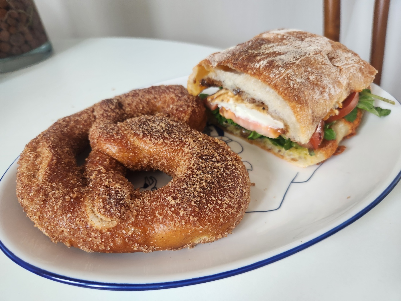 마르게리따 샌드위치는 치아바타 빵에 바질페스토, 루꼴라, 토마토, 리코타치즈가 들어간 담백하고 건강한 느낌의 샌드위치였습니다. 시나몬 프레첼은 다소 딱딱한 듯하지만 시나몬 향이 가득하고 달콤한 게 맛있었습니다. 저의 원픽은 마르게리따 샌드위치입니다.