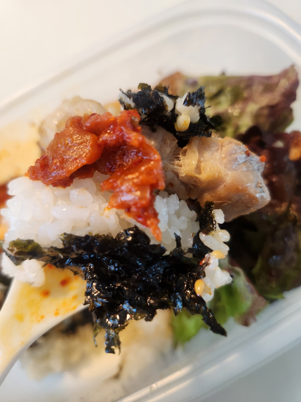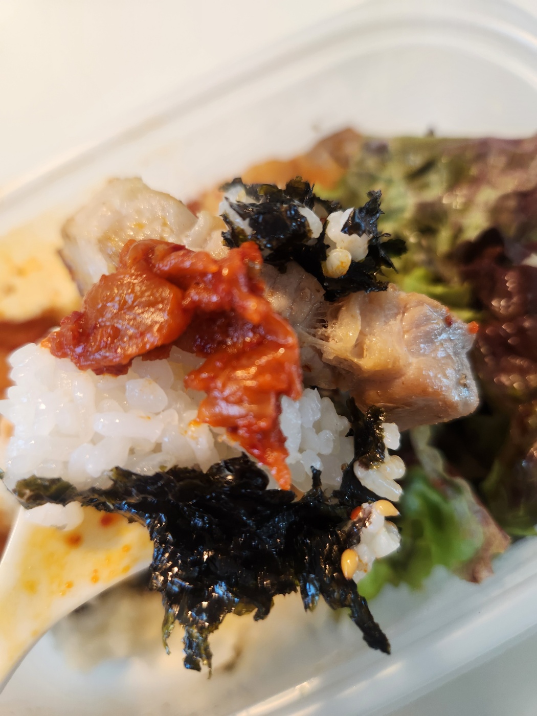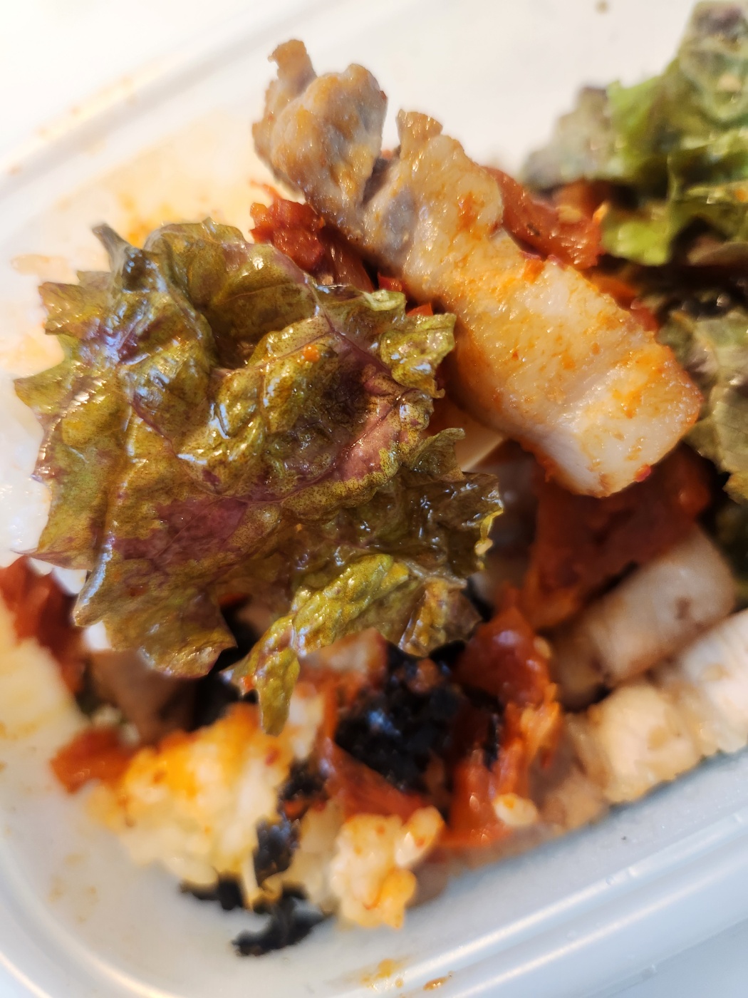 이번에 처음 먹어본 삼겹비빔밥은 정말 맛있었습니다. 삼겹살 양도 많고, 상추도 듬뿍, 새콤한 비빔장까지! 특히 볶음김치가 들어가 있어서 삼겹살과 함께 먹으니 한국인이 가장 좋아하는 조합이 완성됐어요. 밖에서 먹기에도 좋고, 포장해서 집에서 간편하게 식사하기에도 좋답니다. 집에서 삼겹살 굽고, 기름 튀고, 김치 볶을 필요 없이 간편하게 삼겹살과 밥, 볶음김치까지 해결할 수 있어서 매우 편리해요.