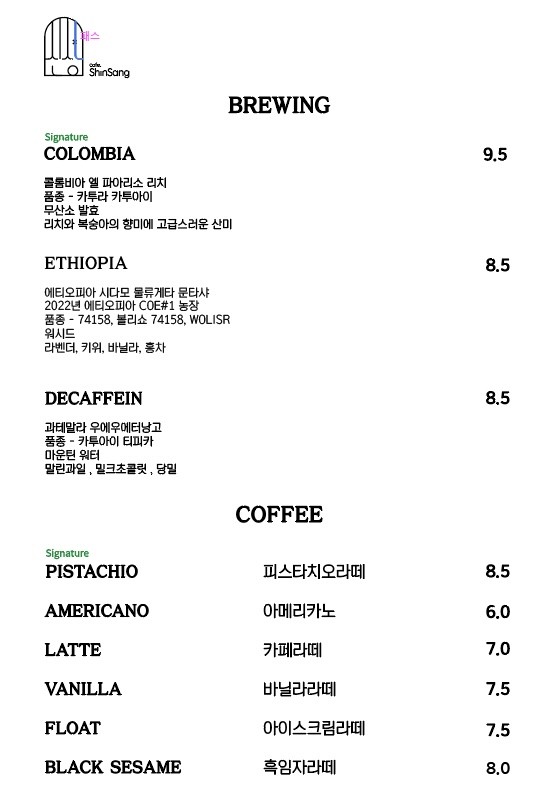 카페 신상 메뉴 및 가격